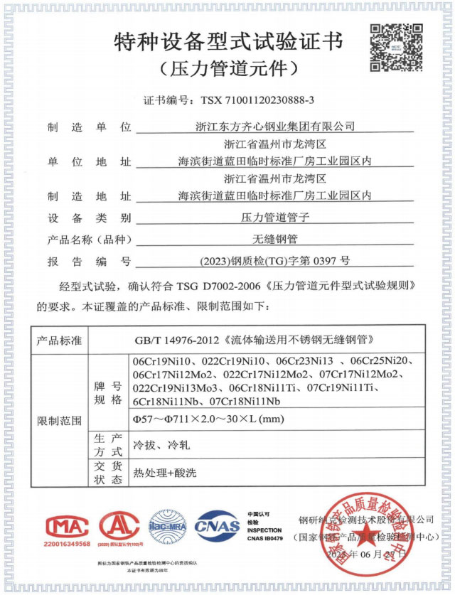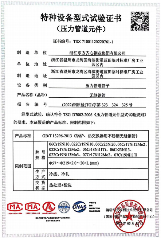 浙江東方齊心以不銹鋼系列產(chǎn)品為主導(dǎo),品種有不銹鋼管、奧氏體不銹鋼管、高溫合金鋼管、雙相不銹鋼管、鎳基合金管、冷凝器用管、U形管、核電管、不銹鋼管件、法蘭、閥門等。規(guī)格有6-2020x0.8-60mm,Ф16-25長度可達33m。公司擁有精密制造鋼管的各類機械設(shè)備25臺(套),其中各類冷軋管機15臺, 冷拔機10臺,天然氣熱處理爐2套。